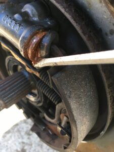 当社で見積もりさせていただいた RホイルシリンダーのO/H フロント左 ロアボールジョイントブーツの交換の